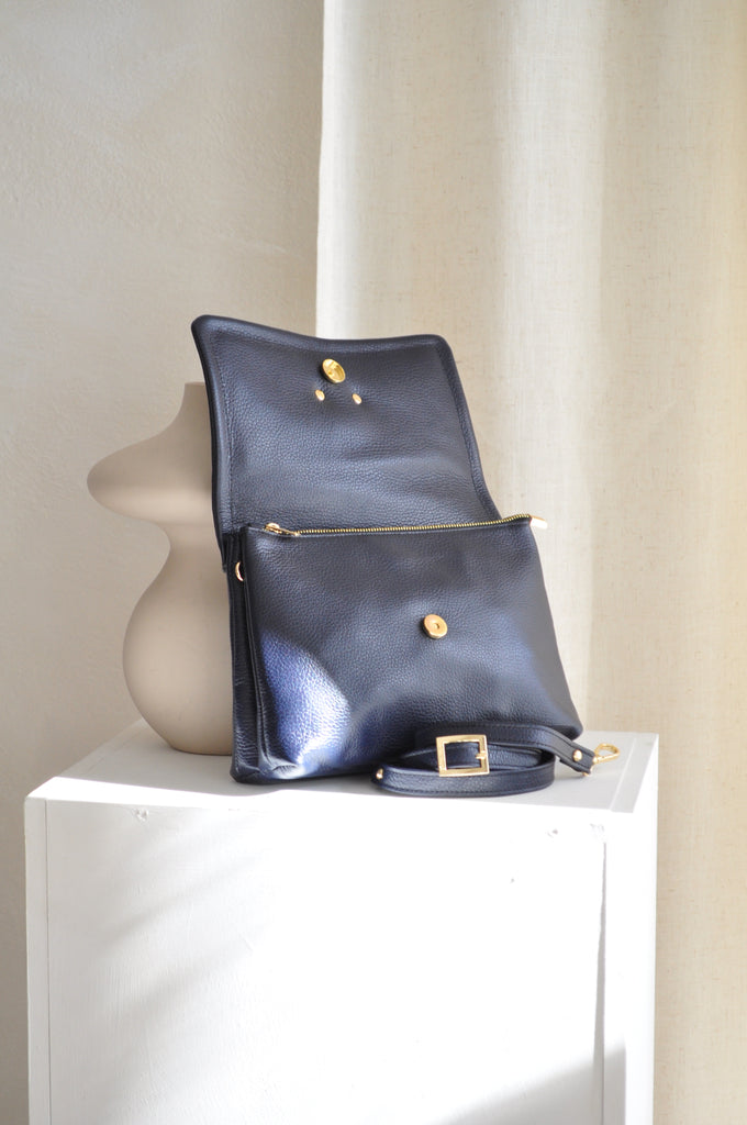 Clelia Large Leather Shoulder Bag - Dark Blue