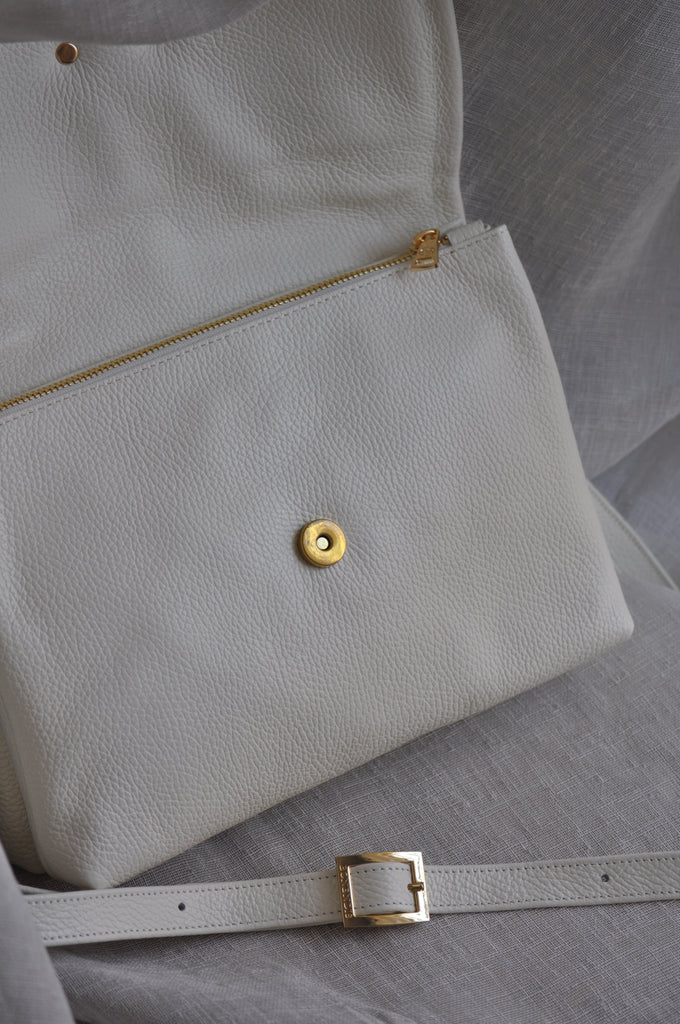 Clelia Large Leather Shoulder Bag - Cream