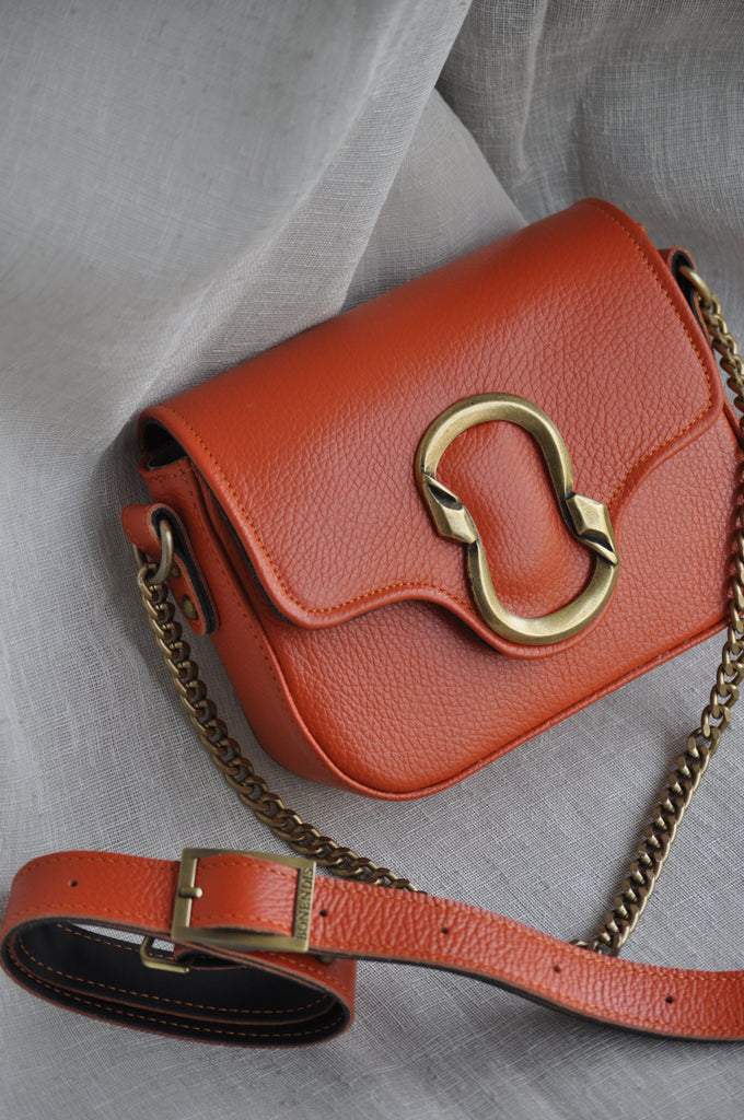 Le magnifique mini sac Eden est l'accessoire en cuir idéal à porter de jour comme de nuit. La lanière en cuir donne un ton plus décontracté à votre look et les décorations dorées font ressortir votre apparence. Il a une belle forme arrondie et avec la chaîne vous pouvez le transformer en un élégant sac à main de cocktail.