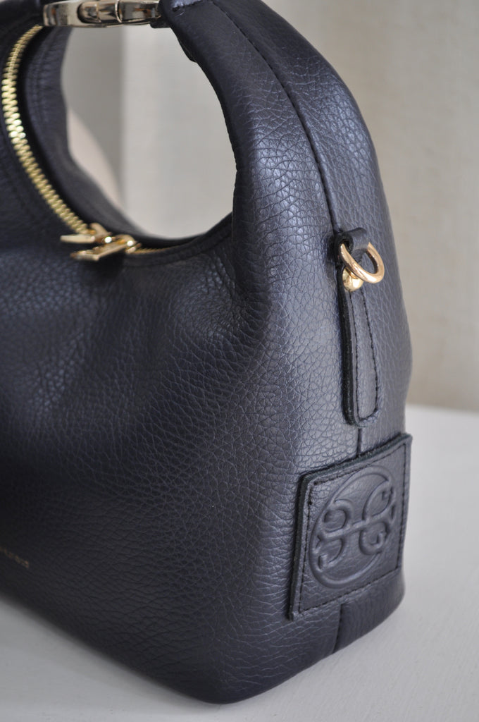 Is a true leather jewel. Petite, elegant, is decorated with beautiful details and a gold buckle that crowns this lovely leather soft handbag. It combined with a leather strap so it can be worn as cross body bag. A sleek and structured accessory designed to elevate your style with elegance and sophistication in any occasion .