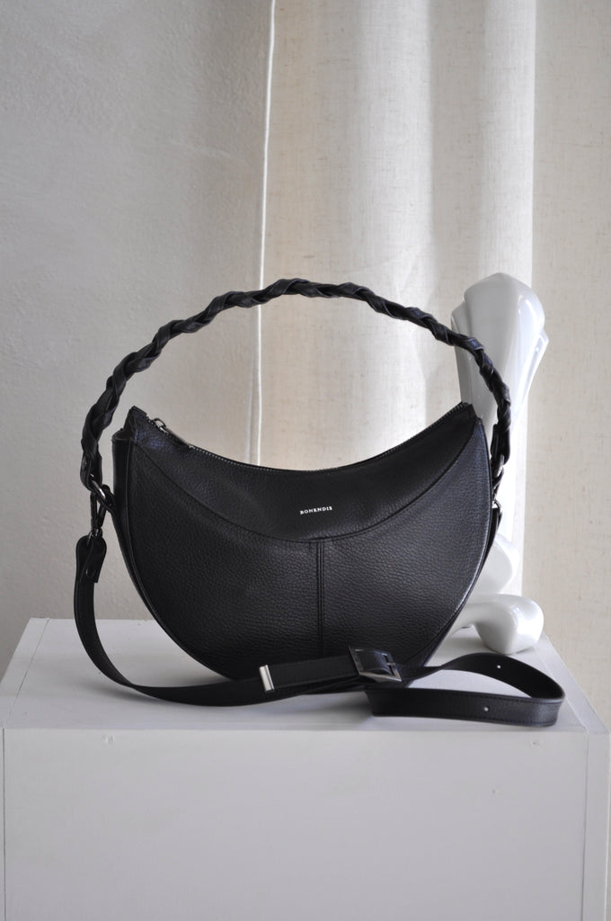 Sophie est le sac qui allie singularité et élégance. Avec sa forme distinctive en demi-lune, il peut être porté à la fois comme un sac croisé et comme un sac à bandoulière, tandis que sa poignée unique en cuir tressé rehausse n'importe quelle tenue avec style.