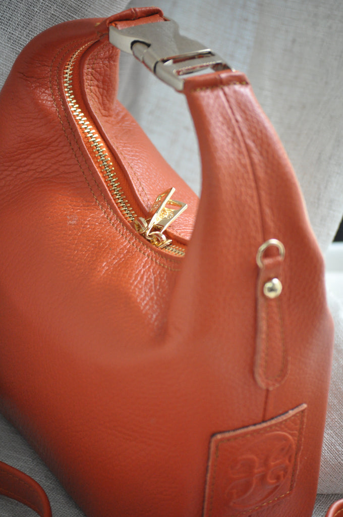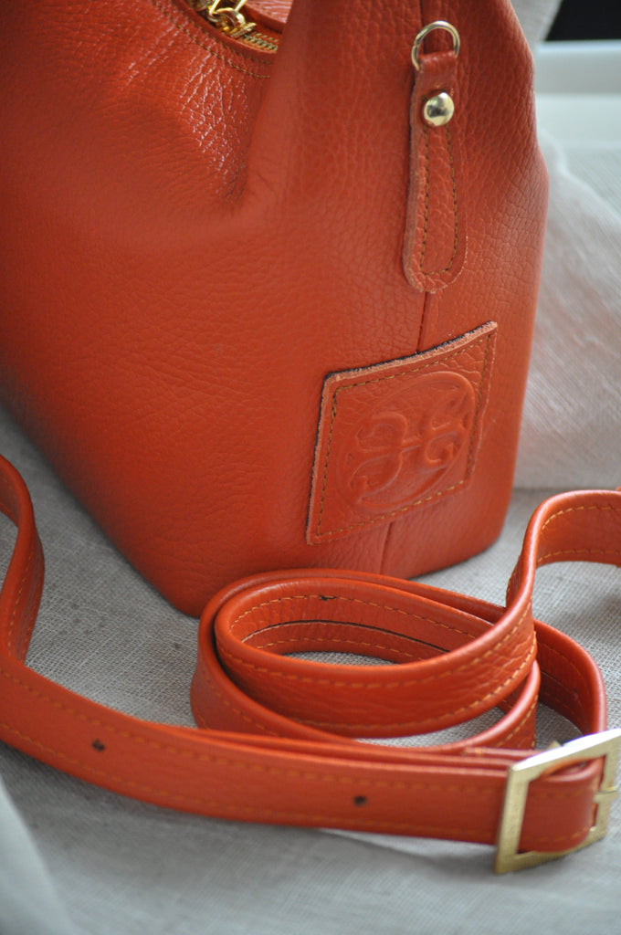 C'est un véritable bijou de cuir. Petit, élégant, il est décoré de jolis détails et d'une boucle dorée qui couronne ce joli sac à main en cuir souple. Il est associé à une bandoulière en cuir pour pouvoir le porter en bandoulière. Un accessoire élégant et structuré conçu pour rehausser votre style avec élégance et sophistication en toute occasion.