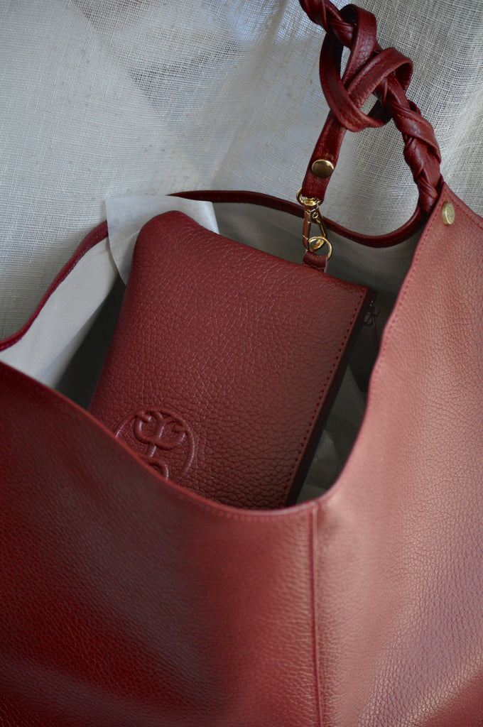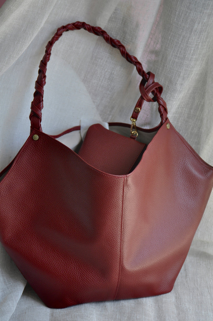 Helena Small Leather Shoulder Bag - Cherry Red