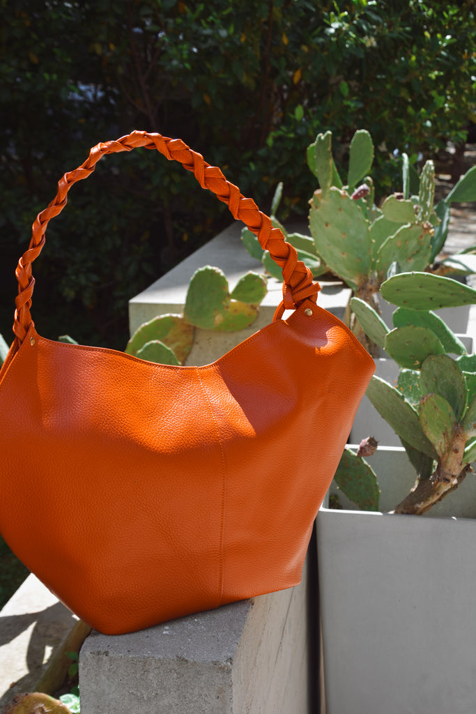 Helena Small Leather Shoulder Bag - Orange
