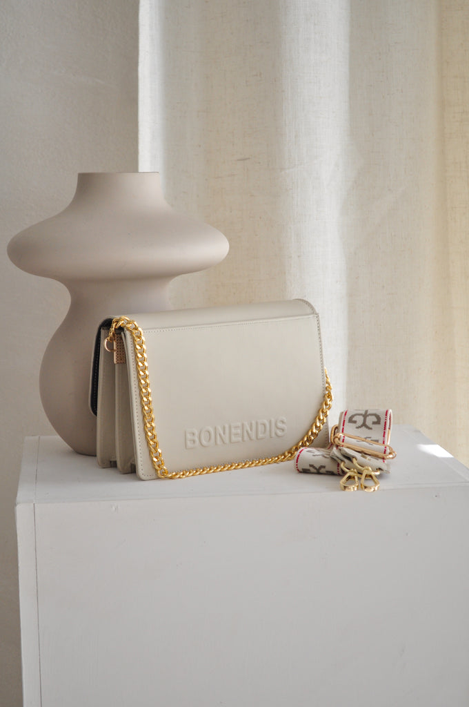 The LIZZY leather shoulder bag is a statement piece, unique to every wardrobe! This stylish model will become an integral part of your everyday life, since it can be worn for casual chic outfits with the characteristic Logo strap and for evening appearances it can be held only by the metal chain. It has an internal partition and two pockets for organizing your personal items. On the back there is the distinctive embossed BONENDIS logo.
