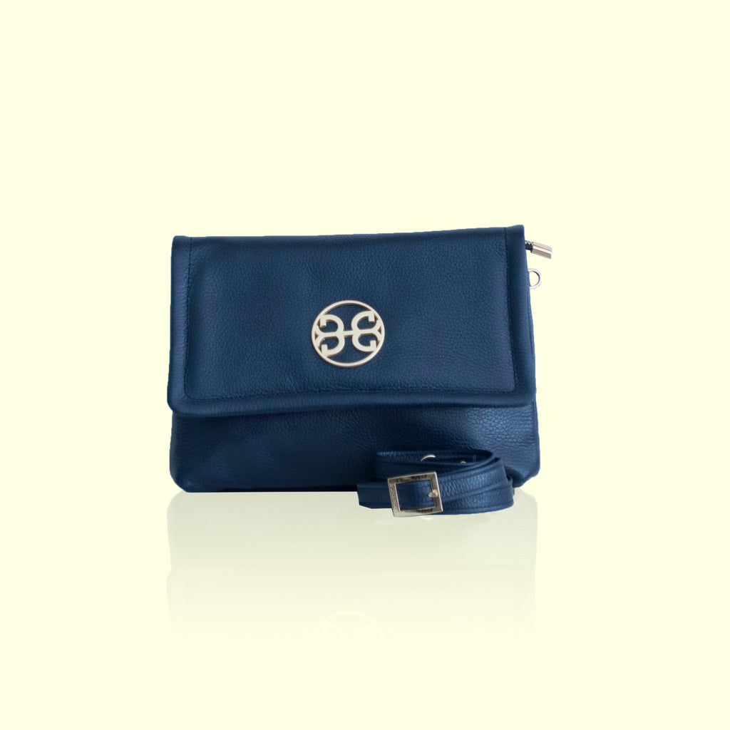 Clelia Large Leather Shoulder Bag - Dark Blue