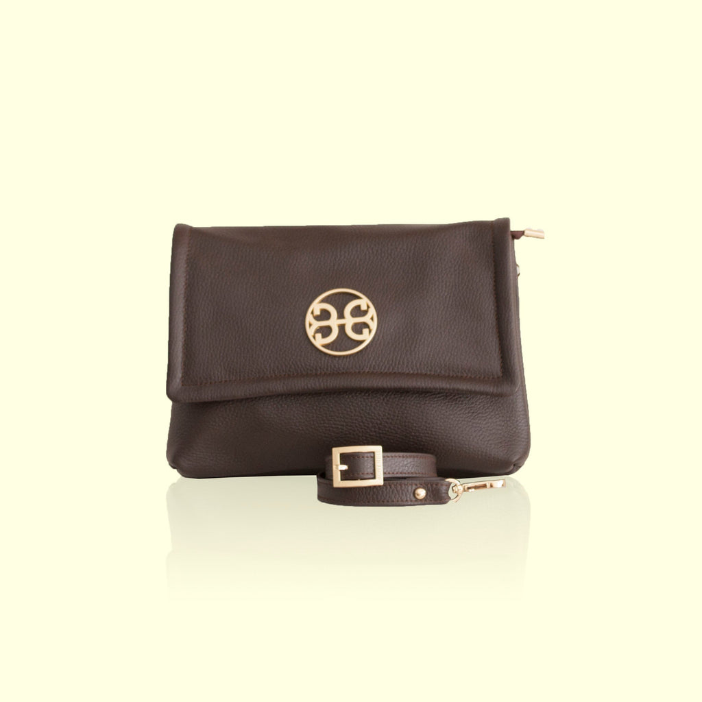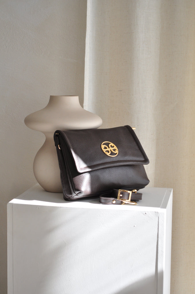 Clelia Large Leather Shoulder Bag - Dark Brown