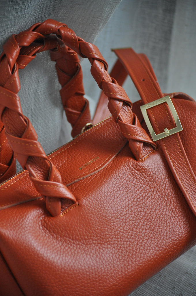 Introducing the exquisite Leather Bowling Bag—a masterpiece of craftsmanship and style. Featuring a braided leather strap, this unique and sophisticated handbag blends timeless elegance with modern flair. Designed in premium leather, the Bowling Bag exudes effortless luxury, making it the perfect statement piece for any occasion. Chic, distinctive, and irresistibly stylish—this is more than a bag; it’s an icon.