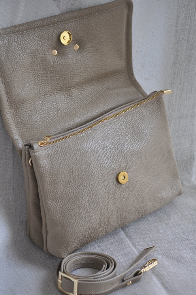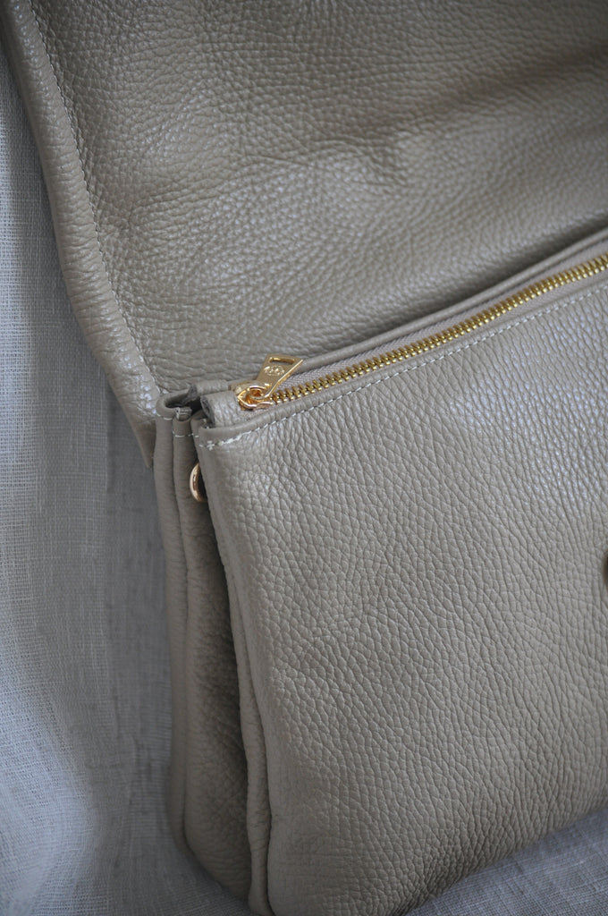 Clelia Large Leather Shoulder Bag - Taupe