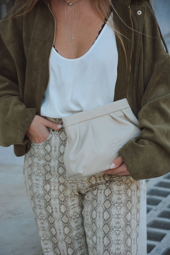 Introducing our Kiss Pouch – a sleek and sophisticated accessory designed to complement your formal attire with understated elegance. Wear it with confidence, either in hand as a minimalist clutch or under your arm for a more polished look. Elevate your formal look with an accessory that effortlessly combines practicality with refined aesthetics.