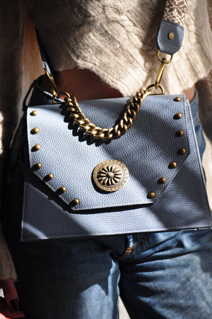 Chiara Leather Shoulder Bag is a statement piece made to stand out. This beautiful leather shoulder bag has an impressive buckle and the metal chain can turn it into a handbag. Its metal details give the feeling of luxury in every use. The impressive strap gives intensity to your style and is adjustable to be worn in any length you want.