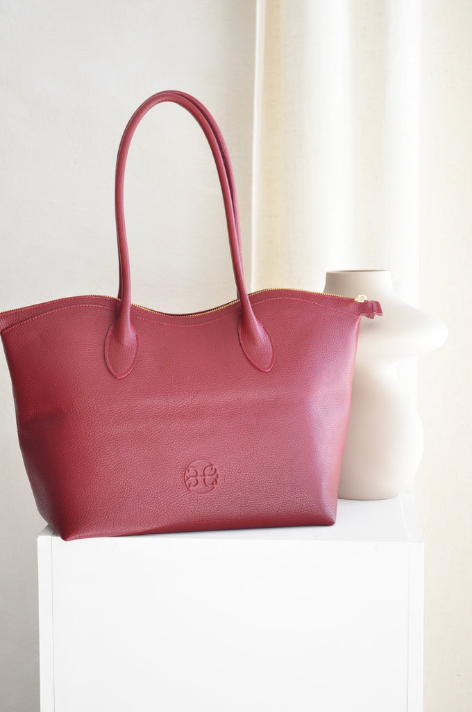 Bisou Large Leather Handbag - Cherry Red