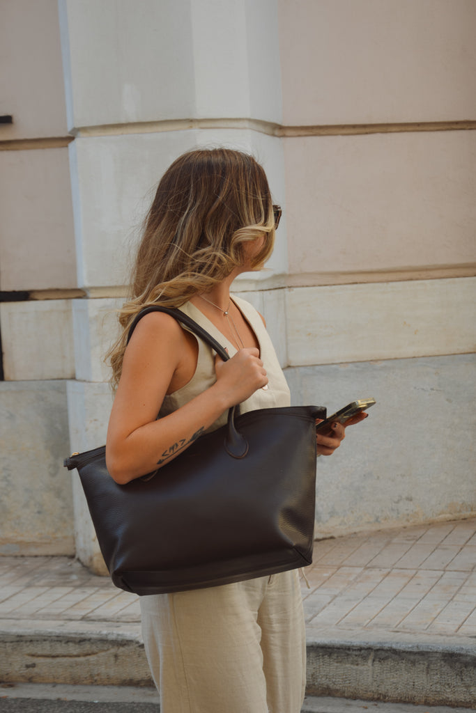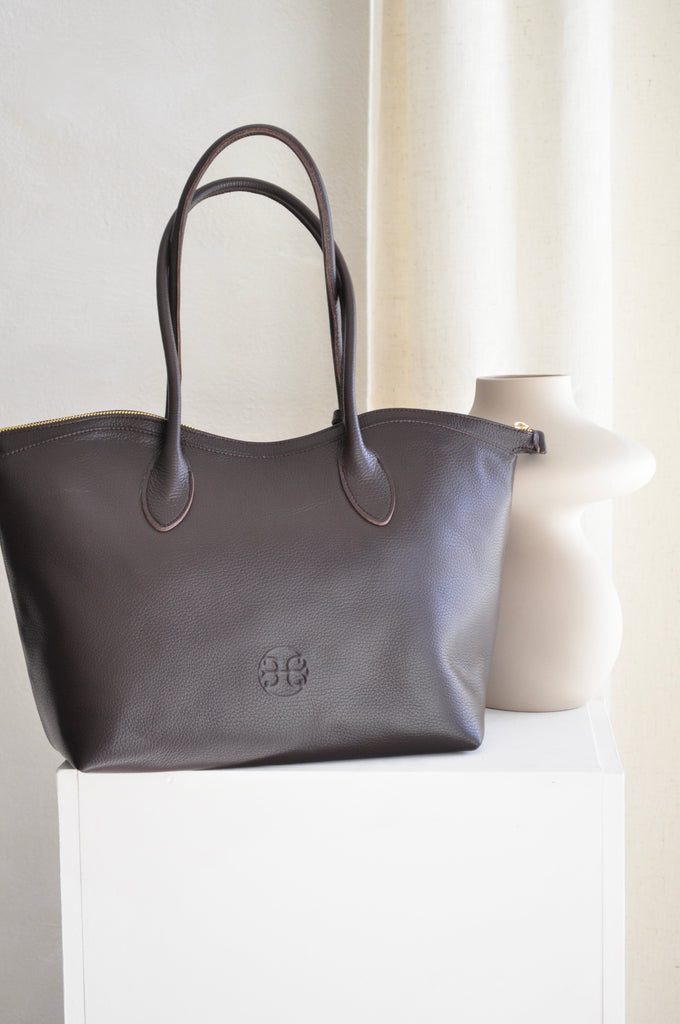Bisou Large Leather Handbag - Dark Brown