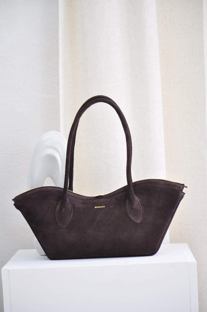 Bisou Small Leather Handbag - Chocolate Suede