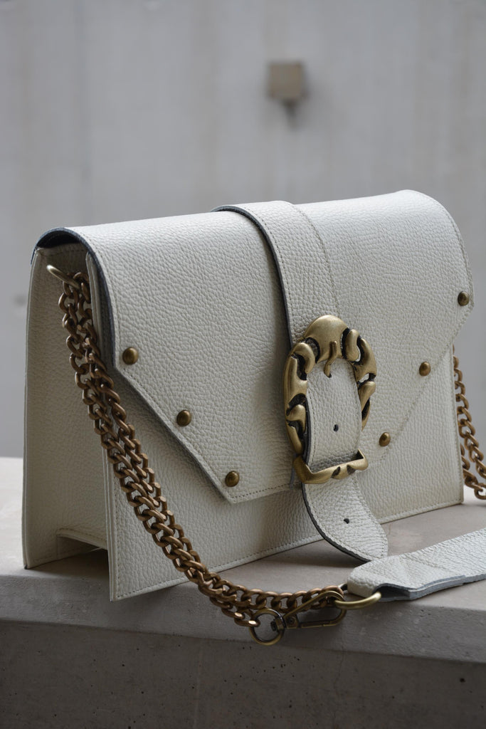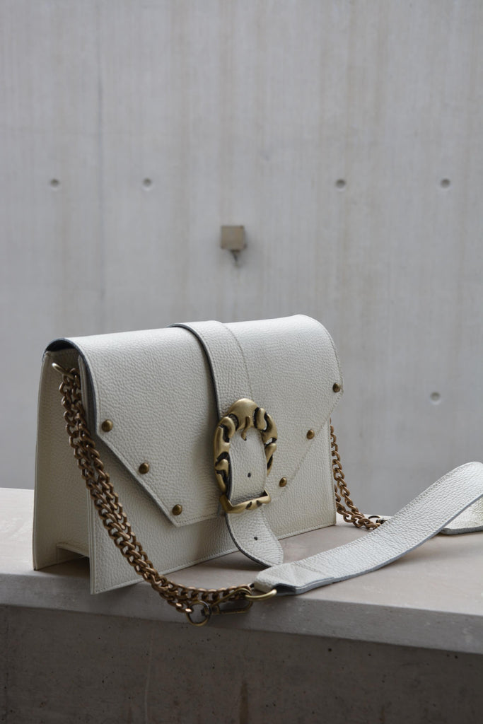 Briana Leather Shoulder Bag - Cream