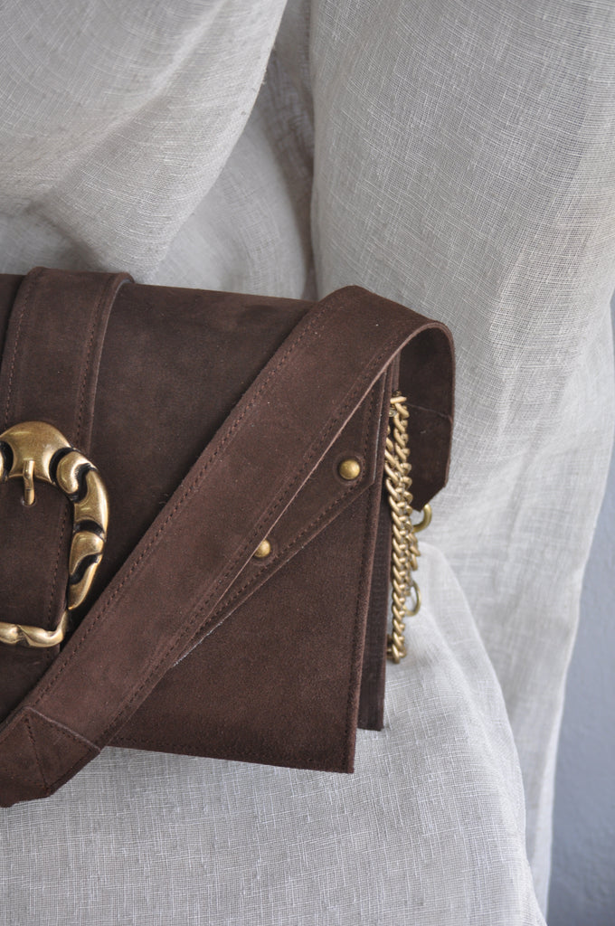 Le sac à bandoulière en cuir Briana est beau et audacieux. Briana est un sac à bandoulière pour le jour et la nuit. Vous pouvez ajuster la longueur de la chaîne et le transformer en sac à bandoulière. Donnez-lui une touche plus rock en doublant la chaîne. Portez-le en toute confiance et transportez tous vos articles nécessaires dans ce sac idéal.